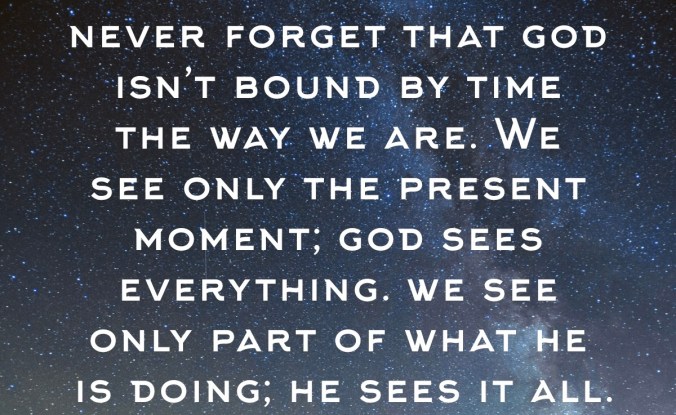 I will Never doubt it, question it, or try to understand what He is doing in my life based on my human mind.