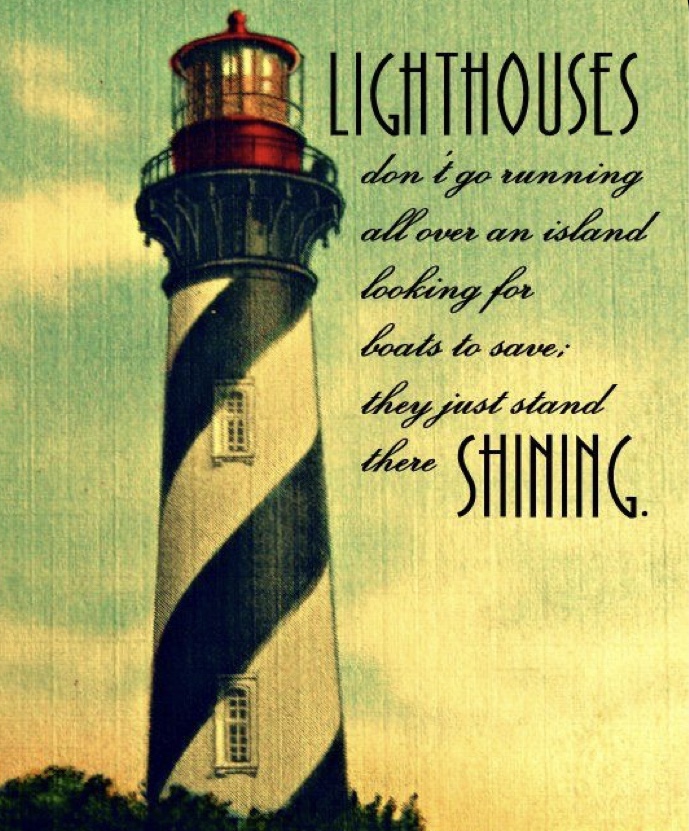 “A Lighthouse doesn’t go around the island looking for boats to save, it just stands there shining “.